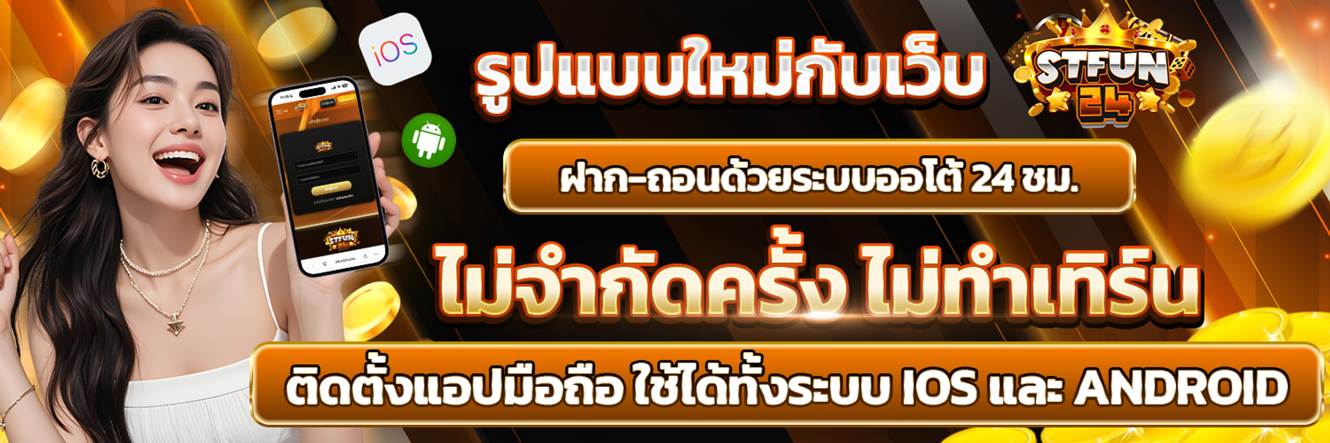 STFUN24 - เว็บพนันออนไลน์ชั้นนำที่มอบประสบการณ์ความบันเทิงเหนือระดับ ด้วยเกมพนันหลากหลายรูปแบบครบวงจร ทั้งกีฬา คาสิโน สล็อต และหวย บนแพลตฟอร์มที่ทันสมัย รองรับการเล่นผ่านทุกอุปกรณ์ ระบบฝาก-ถอนอัตโนมัติรวดเร็วทันใจตลอด 24 ชั่วโมง พร้อมทีมงานมืออาชีพคอยให้บริการ และโปรโมชั่นสุดพิเศษมากมายสำหรับสมาชิกทุกระดับ ตอบโจทย์นักเดิมพันที่ต้องการความสะดวกสบายและความปลอดภัยสูงสุด